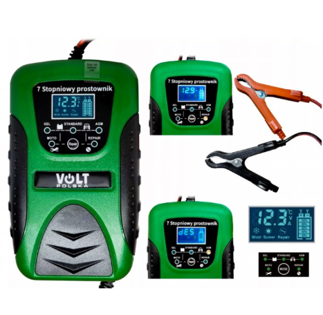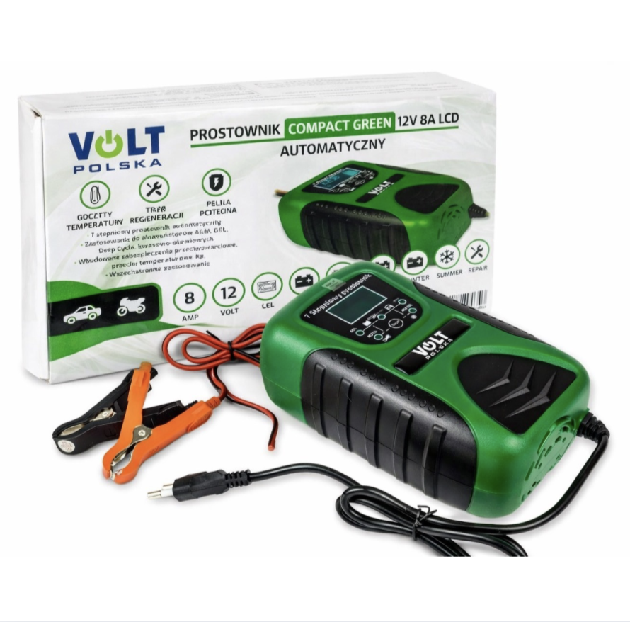 Зарядний пристрій для акумуляторів Volt Polska 12V 8A LCD — це сучасне автоматичне рішення для швидкої, безпечної та ефективної зарядки акумуляторів різних типів. Пристрій підтримує свинцево-кислотні, AGM та GEL акумулятори, що робить його універсальним для автомобілів, мотоциклів, скутерів, човнів та резервних систем живлення.